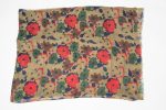 Sciarpa in lana con stampa floreale su fondo sabbia dorata, con fiori nei toni rosso corallo, verde oliva e blu notte. Il disegno crea un effetto caldo e armonioso, ideale per illuminare cappotti e maglieria nei colori neutri o scuri.