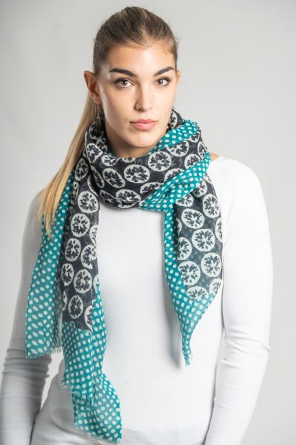 Morbida, leggera e confortevole sulla pelle, si può indossare avvolta attorno al collo oppure come stola sulle spalle.