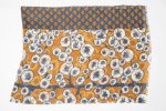 Sciarpa in lana con fantasia floreale stilizzata su fondo senape dorato, con fiori nei toni avorio, blu notte e grigio cenere. La parte superiore presenta un bordo a motivo geometrico che aggiunge equilibrio e carattere al disegno.