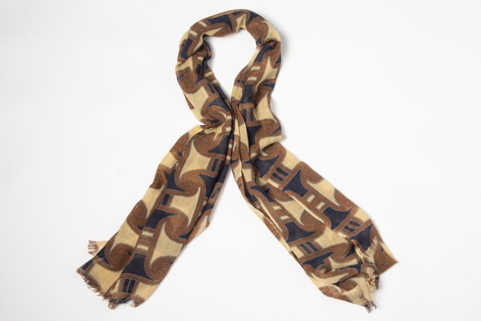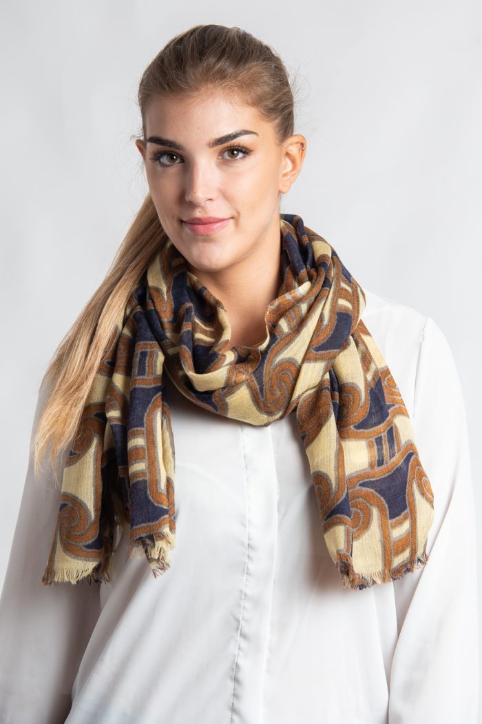 sciarpa lana soft fondo giallo crema disegni geometrici